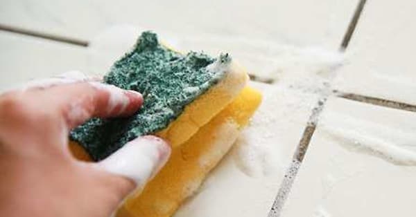 How to remove stains in grout using baking soda and vinegar.